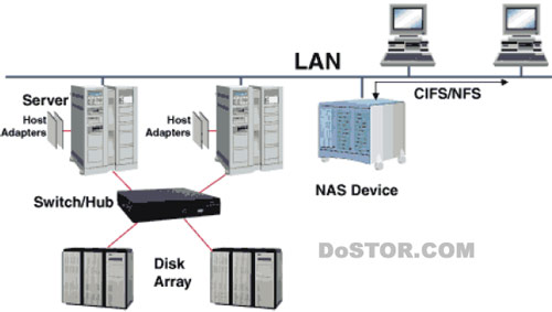 网络附加存储设备(NAS)是一种专业的网络文件存储及文件备份设备,或称为网络直联存储设备、网络磁盘阵列。一个NAS 里面包括核心处理器,文件服务管理工具,一个或者多个的硬盘驱动器用于数据的存储。 NAS 可以应用在任何的网络环境当中。主服务器和客户端可以非常方便地在NAS 上存取任意格式的文件,包括SMB 格式(Windows)NFS 格式(Unix,Linux)和CIFS 格式等等。NAS 系统可以根据服务器或者客户端计算机发出的指令完成对内在文件的管理。另外的特性包括:独立于操作平台,不同类的文件共享,交叉协议用户安全性/许可性,浏览器界面的操作/管理,和不会中断网络的增加和移除服务器。