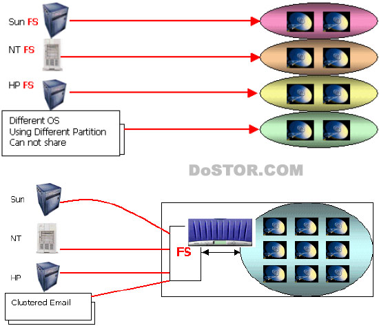 - 存储设备能实现跨平台的存储是很多厂商宣传SAN 时重点强调的,但在现阶段多平台的系统如S/390、各种厂家的UNIX 和NT 的服务器都要联到SAN 中的一个存储设备上,并进行平台之间的数据共享、跨平台操作,实现起来还是有许多障碍的。现实中SAN 往往只能作到NT 与有限的UNIX 平台间的互操作。而且SAN 中不同操作系统间文件系统和数据格式不同所带来的不兼容性,尚未得到很好地解决。所以应用可以读取到网上不论什么地方、什么服务器、什么操作系统平台的数据,还只是人们的一个良好的愿望。