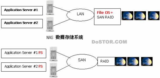 当要求给提供许多客户提供文件共享的接入时,NAS 一般来说是可选的方法。现在NAS设备在满足此种要求上有极大的功效。因为NAS 系统是建立在现有的LAN 和文件系统协议之上的。同SAN 相比,NAS 技术是相对成熟的。尽管有一些SAN 文件共享解决方案存在,它们一般是针对特定的要求,多个服务器要求高速的的接入通过私有的轻量级的协议来实现共享数据。