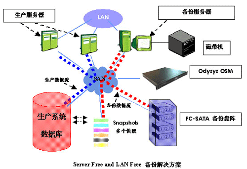 Odysys OSM (存储管理器) 具有开创和开放意义的”管理路径与数据路径相分离”的架构为整个SAN网络提供了集中管理存储池功能和基础快照功能。OSM为所有SAN的资源提供了开放的、支持多厂家存储的扩展管理能力和高可用性, 为SAN环境的企业级动态存储管理,动态数据复制提供了开放的基本平台。