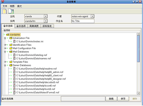 支持单个数据库、所有数据库和日志备份:可以备份Lotus Domino内的所有数据资源,包括单个数据库、所有数据库和日志。对于Lotus Domino数据库而言,数据库备份都是全备份。 增量备份是指日志备份。