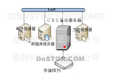 经过以上需求分析,决定采用Coinstor Backup Server (简称CBS)备份软件实现集中、统一备份。