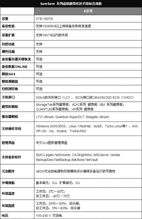 产品简介:适用于数据增长迅速的大型机构,代替传统20-1000槽机械磁带库作为近线备份设备。企业级智能化产品,第三代专用控制器级集成虚拟磁带库设备,最高支持160TB容量扩展,可配置多达255台磁带驱动器和无限个磁带槽,可任意配置模拟磁带机和磁带槽的个数,同时进行255个备份/恢复任务。支持以scsi、iscsi、FC多种接口连接备份。支持功能包括物理磁带库归档、硬件压缩、备份服务器灾难恢复(可选)、备份数据Online (可选)、模拟NAS(可选)、模拟裸磁盘(可选)。异地归档(可选)