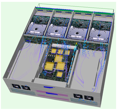 Infortrend采用全球热门FLOTHERM电子热能分析仪软件,分析评估散热效率,用以减少时间耗费并取得实质温度验证结果.依照实验室采用高标准的环境温度高达摄氏40度(40’C)下,进行热能分析验证,以达到系统均匀散热的考验.基于这些严苛条件,Infortrend不断从理论及实验的经验中,设计最佳化的热能解决方案.
