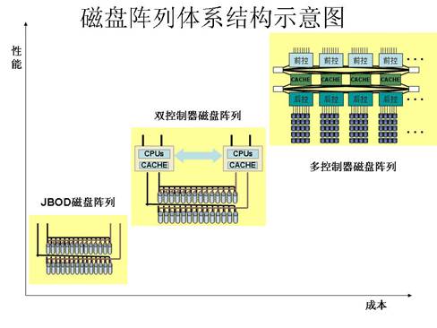 在配置了CPU和cache的磁盘阵列中,其部分高端产品还可以运行基于磁盘阵列的存储软件。因此,它可以提供比较全面的基于磁盘阵列的解决方案。