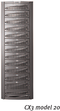 单个、价格便宜的 CLARiiON CX3 机型 20 阵列可以无缝地从 5 个磁盘驱动器扩展到 120 个,实现最大 59 TB 的容量。它提供了 4 个 4 Gb/s 主机连接,最多可支持 128 个高可用、双连接的主机。