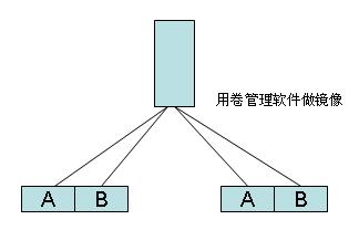 2、单机双盘阵(os层镜像)。针对某些用户的双盘阵冗余的需求,我提出了在os层安装卷管理软件,用软件对两台盘阵做镜像的方案,但只有单机工作,一台盘阵挂了,因为os层的软raid的作用,系统仍然可以工作。