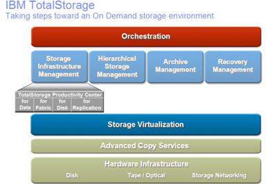 IBM TotalStorage Productivity Center 是IBM 存储操作管理的主要部件,可以提供存储基础设施管理的IBM解决方案。作为存储操作管理策略的一部分,存储基础设施管理工具同恢复管理、分层存储管理和归档管理等其他组件越来越紧密地集成。