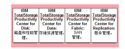 IBM TotalStorage Productivity Center 包括: TPC for Fabric 、TPC for Data、TPC for Disk、TPC for Replication