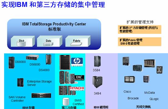IBM TotalStorage Productivity Center, Version3.1不仅支持IBM的存储设备,还包括第三方的存储。