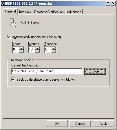 备份WINS也是经常容易被忽视的任务。请记住,在默认情况下WINS并不会得到备份,因此当WINS数据库遭到破坏时,你无法对其进行恢复。好在通过配置实现自动WINS备份也相当容易。
