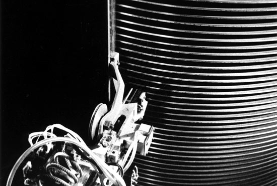 运行中的RAMAC系统。那个时代的编程人员对这些系统有着美好的回忆。News.com的一位读者说,我还记得RAMAC维护人员就站在旁边,需要随时更换新的电子管,因为热量和使用会使系统随时出现故障。观看控制臂沿着硬盘系统上下移动,就象是一次冒险活动,它的移动速度令人惊异。