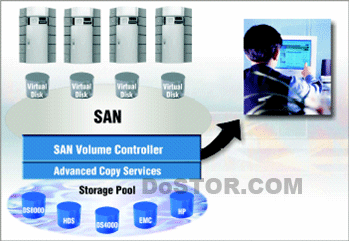 人们通常估计,许多企业仅使用25%到50%的存储设备。通过将多个磁盘阵列的存储容量整合到一个存储设备,SVC旨在帮助企业显著提高存储设备的利用率。存储管理员可以对这台存储设备集中进行管理。无需为每台服务器提供备用存储容量。更确切的说,多个磁盘阵列拥有在所有服务器中共享的存储容量库。因此,存储容量库可以比较小。