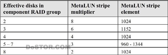 如果有疑问,使用4作为metaLUN的stripe multiplier。对大部分情形来说,这是一个默认的,也是一个好的选择。