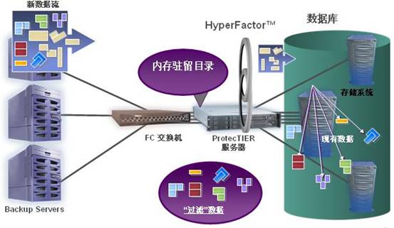 ProtecTIER VT是采用独特的HyperFactor技术的VTL解决方案,它允许客户在保证100%的数据完整性的同时消除冗余数据,能从根本上将物理存储需求降至原来的二十五分之一甚至更低。这是市场上其他同类产品所不能提供的。