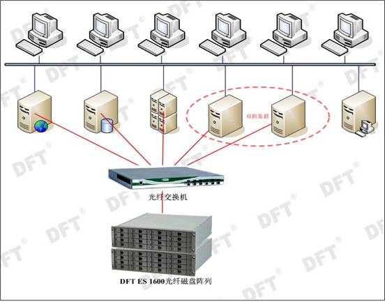 国信智能网存储系统采用集中存储应用模式,计费应用服务采用安全可靠的双机热备系统,保证应用系统7×24小不间断提供应用服务。数据存储采用DFT ES1600全光纤磁盘阵列,磁盘阵列有部件和功能冗余性,可为磁盘阵列微处理器、控制存储、控制和数据总线、电源及制冷风扇提供全面容错性。磁盘阵列能够承受多种部件故障,并在此同时继续提供对存储数据的访问。采用DFT双机热备系统后,当正常运行的主服务器因硬件故障导或理软件故障导致应用程序服务不可用时,DFT双机系统会自动将系统服务托管到另一台,以保证关键应用系统的持续运行。