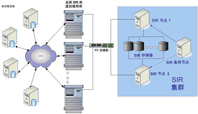 多台 SIR 服务器可共同提供对整合的单一实例存储的访问。 并可通过增加服务器,让性能实现飞跃。