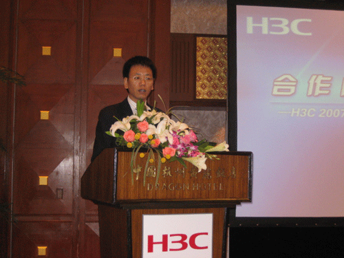 会上,H3C首席运营官兼总裁郑树生向与会嘉宾介绍了H3C三年来的发展历程与取得的成绩,此外,H3C还向参会者系统介绍了2007年度H3C的市场战略目标,全面诠释了H3C在中国的渠道和营销策略;并与参会嘉宾一起分享了专业产品(H3C对目前拥有的非网络产品的统一称谓)及解决方案所带来的商机。而在下午的产品交流中,H3C各产品线总监介绍了安全、存储、监控的市场发展趋势、商机以及H3C产品/解决方案的特点。