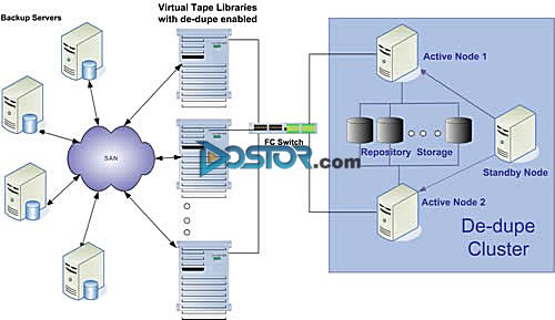 由于重复数据删除一般被用于长期数据存储,因此从容量和性能上来说,其可缩放性就成了一个重要因素。一款重复数据删除解决方案应该具备一个经济结构,不管是从最初的执行还是系统长期增长上来说,它的大小都应该是合适的。 例如,如下图所示,这个群集的解决方案可以随需求进行调整,满足容量增长的需求,同时也不会降低重复数据删除的效率和系统的性能。