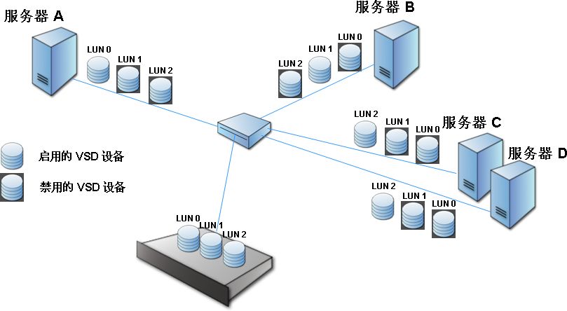 • LUN Masking功能可以实现对主机的LUN 过滤,实现SAN中资源的管理,分配和监控等功能。