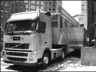 惠普解决方案移动中心是一辆经过改装的沃尔沃卡车,车身侧拉后可形成60平方米的展示空间。