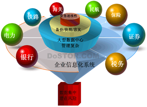 客户认为目前的数据中心和保护措施仍然停留在各自管理、定时磁带备份的方式,已经不能满足如此众多业务发展的需求,信息管理主管者也面临着一系列的潜在问题:
