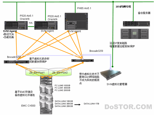 同A一样,已经构建好了以EMC CX500为核心的SAN存储系统,只需在现有的系统下添加SVM管理即可。