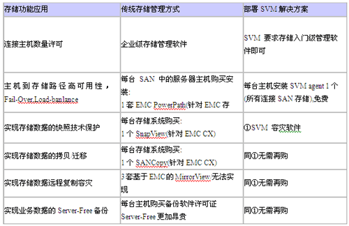 本方案仅需要SVM接入到SAN中即可管理和实现数据保护和容灾复制,对存储和主机来说都无需再额外投资。