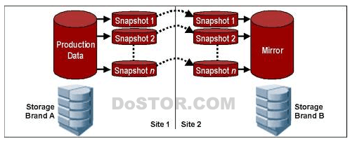 异步MultiMirror 通过保留每个站点的Pit,如果有任何形式的数据破坏情况发生,系统管理员可以回滚镜像的系统到最近的良好状态的快照。这种快照加强的镜像方法能够在潜在灾难(没有出现明显的数据灾难迹象但实际上数据已经被破坏)发生时迅速的恢复。
