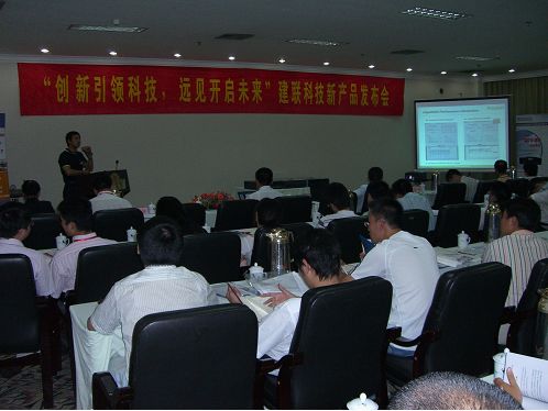 2007年8月22日、24日、27日分别于杭州、上海和南京三地,建联科技成功的召开了新产品发布会,在发布会上,建联科技像渠道和媒体展示了最新的推出的4Gb纯光纤的磁盘阵列等产品,同时还现场展示了虚拟办公室等企业管理软件,这一系列最新技术含量产品的展示在磁盘阵列的进化过程中,将又是一次新的革命,为整个行业的全力的发展奠定了坚实的基础。也代表了一直致力于存储市场的发展的建联科技正式的跻身国内一流存储厂商的行业。