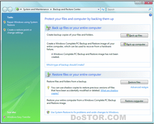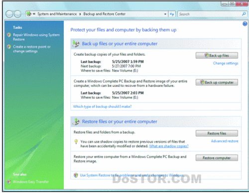 这四项功能都可以在新的“备份和还原中心”(请参见图 1)找到,这些功能都允许您备份和还原数据,但每项功能都有明显差异。但这些功能结合使用可以提供广泛的保护,防止在计算机的整个生存期中出现各种形式的数据丢失。