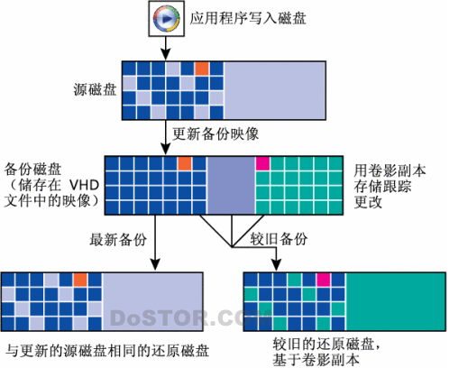 还原数据时,会将块还原到各自的原始位置。如果要从较早的备份还原,引擎会从卷影副本区域进行读取并还原相应的块。