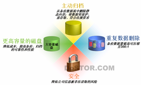 纵观EMC BuRA的新发展,它对重复数据删除技术的引入和归档技术的进一步强化,可以说是“大禹治水”理念的进一步发展,让BuRA进入一个新的境界。通过重复数据删除,可以备份数据量最多可压缩300倍,大大节省存储空间;可以缩短备份、恢复时间,节省远程备份的带宽。