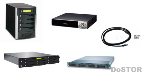 另外在嵌入式DVR扩充容量时,ACS-77100和ACS-78100提供了eSATA主机接口;可以连接国内主流厂商的DVR主机,主机接口通过eSATA线缆插入到DVR主板上的SATA硬盘接口上即可,这是目前国内唯一可提供SATA RAID供嵌入式硬盘录像机扩容的磁盘阵列设备。