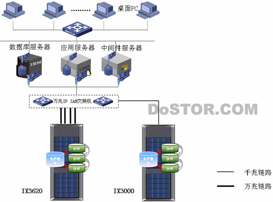 IV5000是一个很强大的数据化管理平台,帮助大家去整合现有的各种各样的FC、SCSI等数据的2G、4G,甚至千兆、万兆所有的接口都在统一平台之上进行数据管理。这是IX1000是我们现在入门级的产品,主要是分级节点提供一个比较高的性能和比较强大的智能存储和复制的能力。这是虚拟灾备产品,为我们的用户提供在现有的环境当中去加速和提高备份的功能,去减少和缩小由于备份带来业务终端的时间。