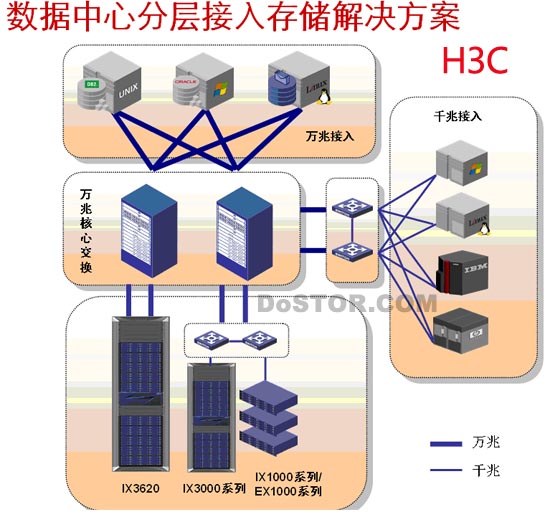 通过对IP存储的持续技术投入,H3C率先在万兆存储技术上获得了革命性的突破,推出了新一代万兆存储产品Neocean IX3620。这也是全球范围内,IP存储厂商第一次在从中端到高端全系列产品上,实现万兆端到端的整体架构。此次万兆存储产品的推出,H3C巩固了IP存储领航者地位,引领存储步入了万兆时代。