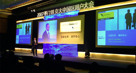 赛门铁克董事长兼首席执行官John.Thompson 先生做大会的主题演讲,他用赛门铁克的宏伟愿景为中国企业的信息洪流树立信心。他表示赛门铁克正竭尽全力,确保从数据中心到端点的信息往返通道,畅通无阻,安全无忧,让信任永固。
