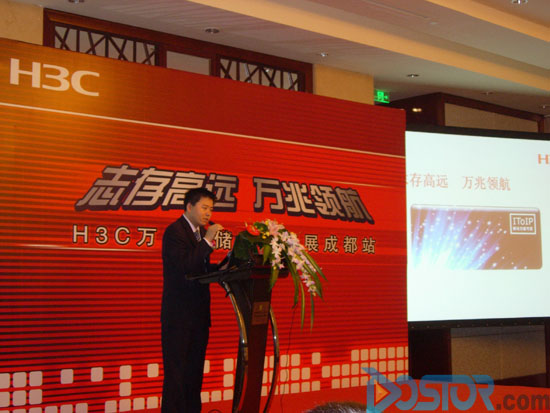 DoSTOR存储在线 11月9日成都报道:昨天,H3C"志存高远 万兆领航"全国巡展来到了天府之国四川成都。虽然此次全国巡展已接近尾声,可热度却丝毫不减。这大概与成都近年来不断推进信息化建设有一定关系,当然来自H3C自身的吸引力也是不容忽视的。
