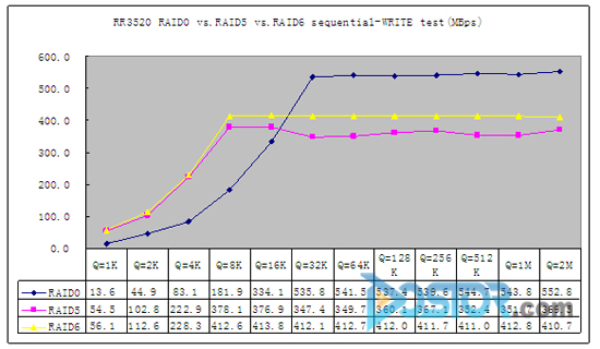 RocketRAID 3520 的 RAID 5、RAID6比以往的性能有大幅度的提升,在HighPoint 系IOP列产品中,RocketRAID 3520 以其独特的特性和超强的读写性能,无论从价格或者使用性能上,都比SCSI RAID或者SAS RAID略胜一筹。RR3520为用户带来安全稳定的同时,还带来RAID5/RAID6的高速读写体验 。