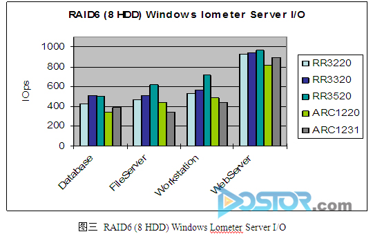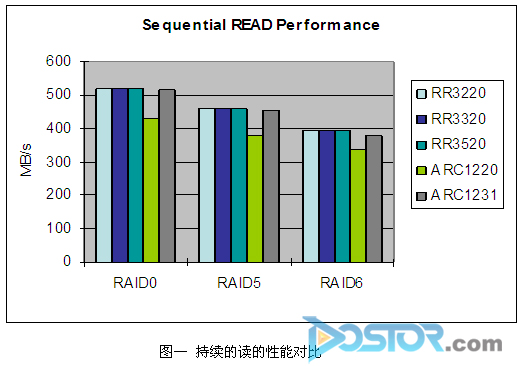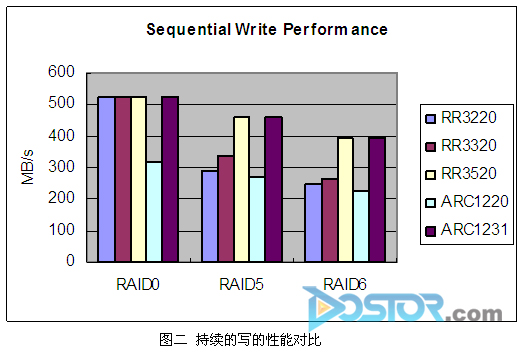 RocketRAID 3520有更好的性能表现,尤其是在RAID 5 和 RAID 6,这是因为 IOP341有超强的ADMA处理器。读的性能会受限于硬盘本身。但是具有IOP341 处理器的RocketRAID 3520 和竞争产品相比,有更完美的RAID 5/6 性能体现,这归功其智能的缓存计算技术。