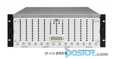 EP-4429系列是4u 42盘位的超高密度存储系统,主机通道为4Gb FC,设备通道为SAS或SATA,全模块化设计使4429系列有着很好的升级或规格转换空间,在这个空间内可提供:4Gb FC-to-SAS、4Gb FC-to-SATA、SAS-to-SAS、SAS-to-SATA四种规格,且均可选择单或双RAID控制器。