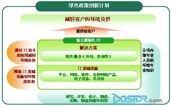Fujistus(富士通)自成立之日起,就将环境保护作为自己最重要的工作之一,公司长年坚持开展广泛的环保运动。如今,作为世界第三大IT服务企业的Fujitsu(富士通),又在以往环保成果的基础上进一步推进绿色政策创新计划的实施。该计划是其承担企业公民责任的一项重大举措。通过在虚拟技术基础上小型节能化IT设备和数据中心的应用,来全面降低IT基础设施的环境负担,同时通过在包括外包和咨询服务等方面采用最新IT技术来帮助客户减轻环保负担。