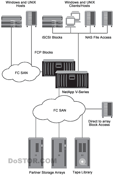 NetApp V 系列产品线是一个存储虚拟化解决方案,使 IT 团队能够在利用现有的 SAN 投资的同时,利用 NetApp 提供的独特功能。V 系列产品线具有独特的能力,能够统一对 Hitachi、HP、IBM、Fujitsu 和 EMC 的存储阵列产品的块和文件访问。