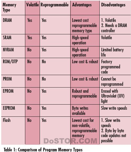 DRAM和SRAM都是易失性存储器,尽管这两种类型的存储器都可以用作程序存储器和数据存储器,但SRAM主要用于数据存储器。DRAM与SRAM之间的主要差别是数据存储的寿命。只要不断电,SRAM就能保持其数据,但DRAM只有极短的数据寿命,通常为4毫秒左右。