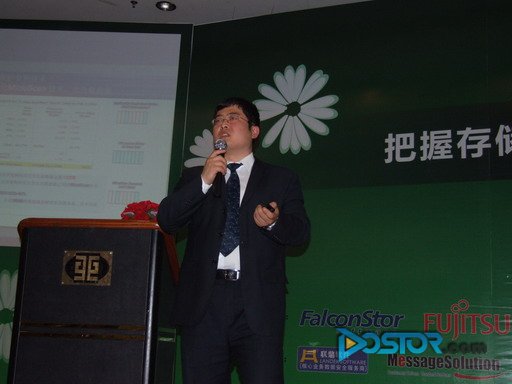 在接下来的演讲中,飞康软件公司中国区销售经理刘夏鸣先生表示,在企业实行持续数据保护和灾难恢复等数据保护工作时,磁盘有着比磁带更快、更安全、恢复更容易的"天然"的优势,他表示,基于磁盘技术的存储产品并依靠持续数据保护软件、灾难恢复软件将是用户完善其数据保护架构的关键,对此,思博通公司北京代表处首席代表翟珉先生表示,思博通公司提供了具有重复数据删除功能的VTL产品,能够在提供高速的存储应用的同时,也能够减少用户的数据量,基于重复数据删除技术的VTL产品,将大幅度节省用户的存储空间,从而尽可能的延续存储容量的生命周期。