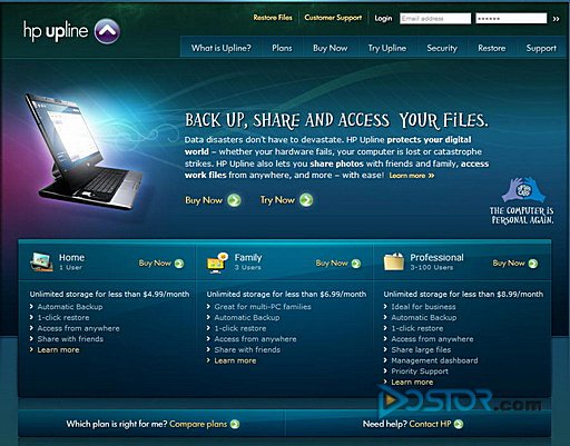 DoSTOR存储在线 4月8日国际报道:目前,在线存储与备份服务已经是众多厂商最为关注的领域,最近一家进入这个市场的厂商则是惠普公司,昨天,惠普正式推出一项成为HP Upline的服务,提供了在线存储、在线备份以及数字内容分享等服务,用户通过HP Upline可以通过互联网存储、备份、共享自己的数据。