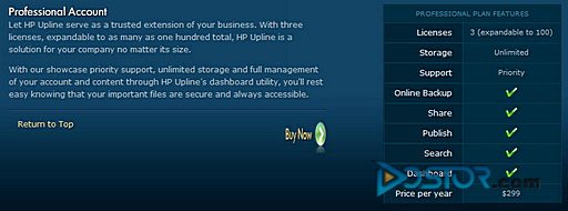 据惠普方面表示,HP Upline将提供部分的免费服务,其中,免费用户可以获得一年授权,并提供给其1GB的在线存储空间,而对于家庭、SOHO用户一起企业用户,惠普也提供了相应的在线存储与备份解决方案,但是这些服务需要支付一定的服务费用。目前最贵的版本为Professional Account,其价格为一年299美元,提供无限的存储空间,最大100个登录授权,全面的技术支持以及在线备份、在线分享、发布、搜索等服务。