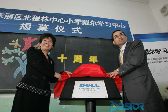 下图是津市东丽区委副书记孙富霞女士和戴尔全球副总裁及大中华区总裁闵毅达先生4月18日在天津东丽区北程林中心小学为中国第五家戴尔学习中心揭幕。