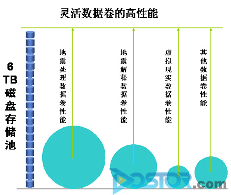 今后随着新解释工具(5X),预存储数据解释工具(5X),慢速(4D)地震(3X)以及剪切波数据的运用,数据量将会以惊人的225倍(5´5´3´3)的高速度增长,因此存储系统应完全满足未来应用对容量的要求,同时具备在线增容的能力。