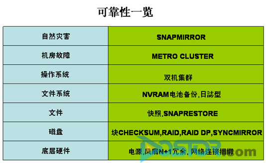 NetApp FAS920C是高度可靠的存储设备,所有部件都采取了冗余技术,保证硬件故障不会造成系统的不可用。